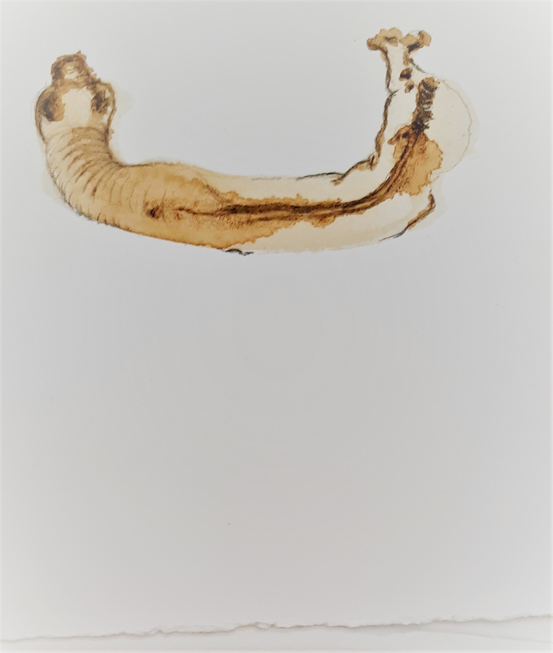 Prompted by the title of the exhibition, Planetary, this assembly of works reach outward to consider what it means to be of this planet; situated here and now in the Anthropocene, facing climate crisis, and wondering: who are our kin, what is our shared relationship with the Earth and how can we adapt? Conceptually inspired by the writing of D. Haraway, the works range from 24 portraits of Earth’s first animals from the Cambrian era, as found in the Burgess Shale, as well as other animals that are poised to thrive within climate change like cephalopods and tardigrades (who’s lineage notably goes back to the first animals (6 works including drawings with clay and compost and textiles), videos of landscape in motion blur (taken in Kootenay National Park), and a human size moveable geometric sculpture that was inspired abstractions of the globe that emerged in the Modern era that embody ideas of resource sharing and re-imagining the way we see the world and our place in it.