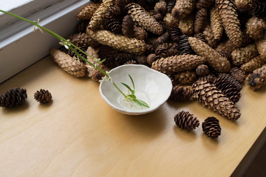 the word for world is forest is an assemblage sculpture of young and mature spruce cones from the artist’s yard, gathered over one year from spring 2019 to spring 2020. The spruce trees are about fifty years old and have outgrown their space between the road and the home. Stressed by the constrained resources in this suburban setting, they produce more cones. This work aims to quantify the impact of such stress as the artist considers her responsibility to these arboreal neighbours.